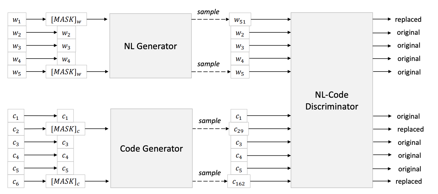 NL, Code Generator를 따로 두고, MASK 토큰에 대한 예측을 하게 한 후, pretrain 모델이 각 토큰이 generator에 의해서 만들어진 것인지, 오리지널 토큰인지 맞추도록 합니다. RTD task는 효율적인 학습을 도울 수 있는 것으로 알려져 있습니다. RTD의 장점에는,