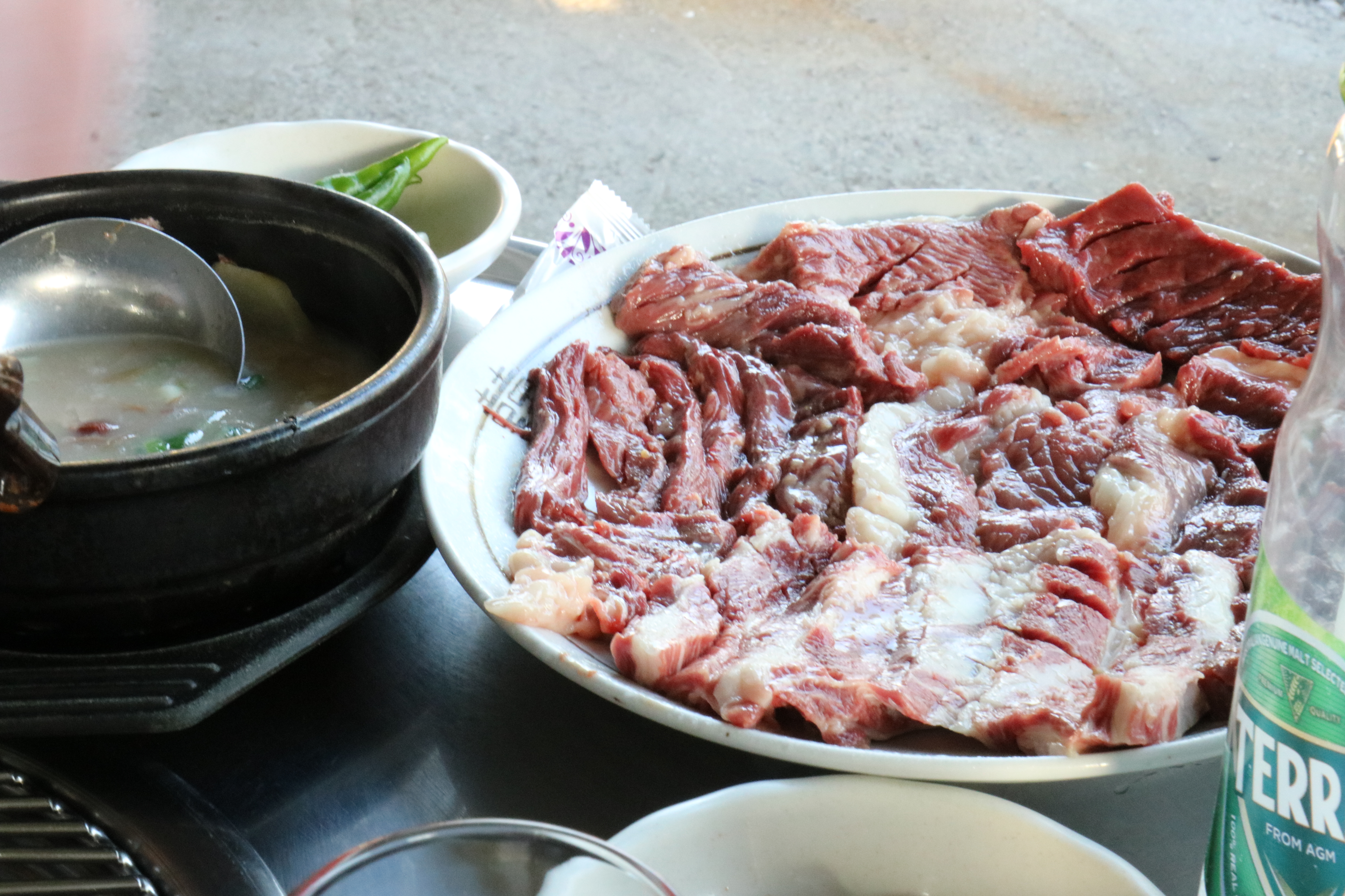 말 고기 육회입니다. 말 고기 전에 먹는 거라고 하더라구요. 사진찍고 있으니까 아저씨들이 계속 빨리 한입먹어보라고 재촉하셨습니다.